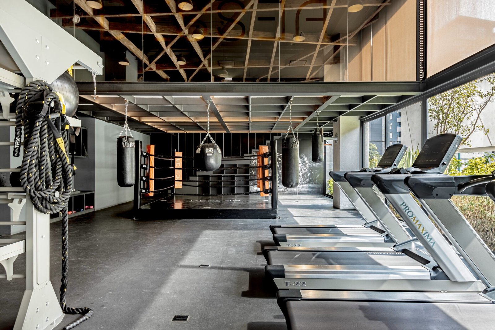 - Gimnasio con ring de box y salón de yoga