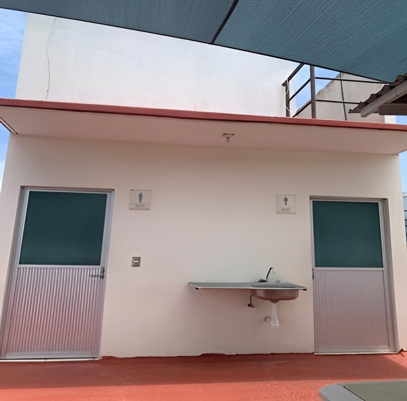 Terraza con baño completo para damas y caballeros.